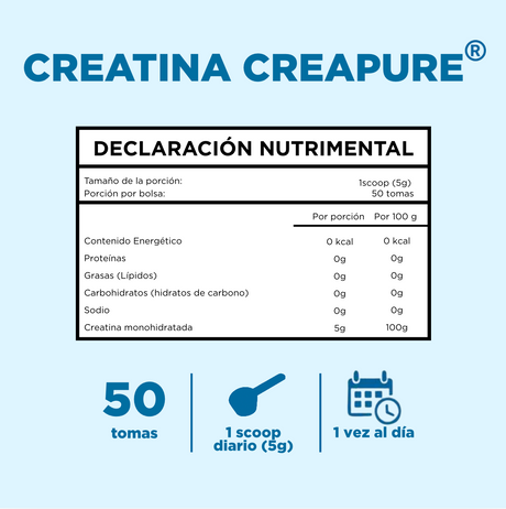 Una buena creatina que sea 100% pura no aporta calorías y es clave para desarrollar masa muscular, lo que ayuda a aumentar el metabolismo y facilitar la reducción de grasa corporal de manera saludable.